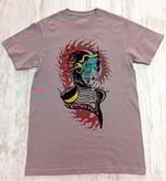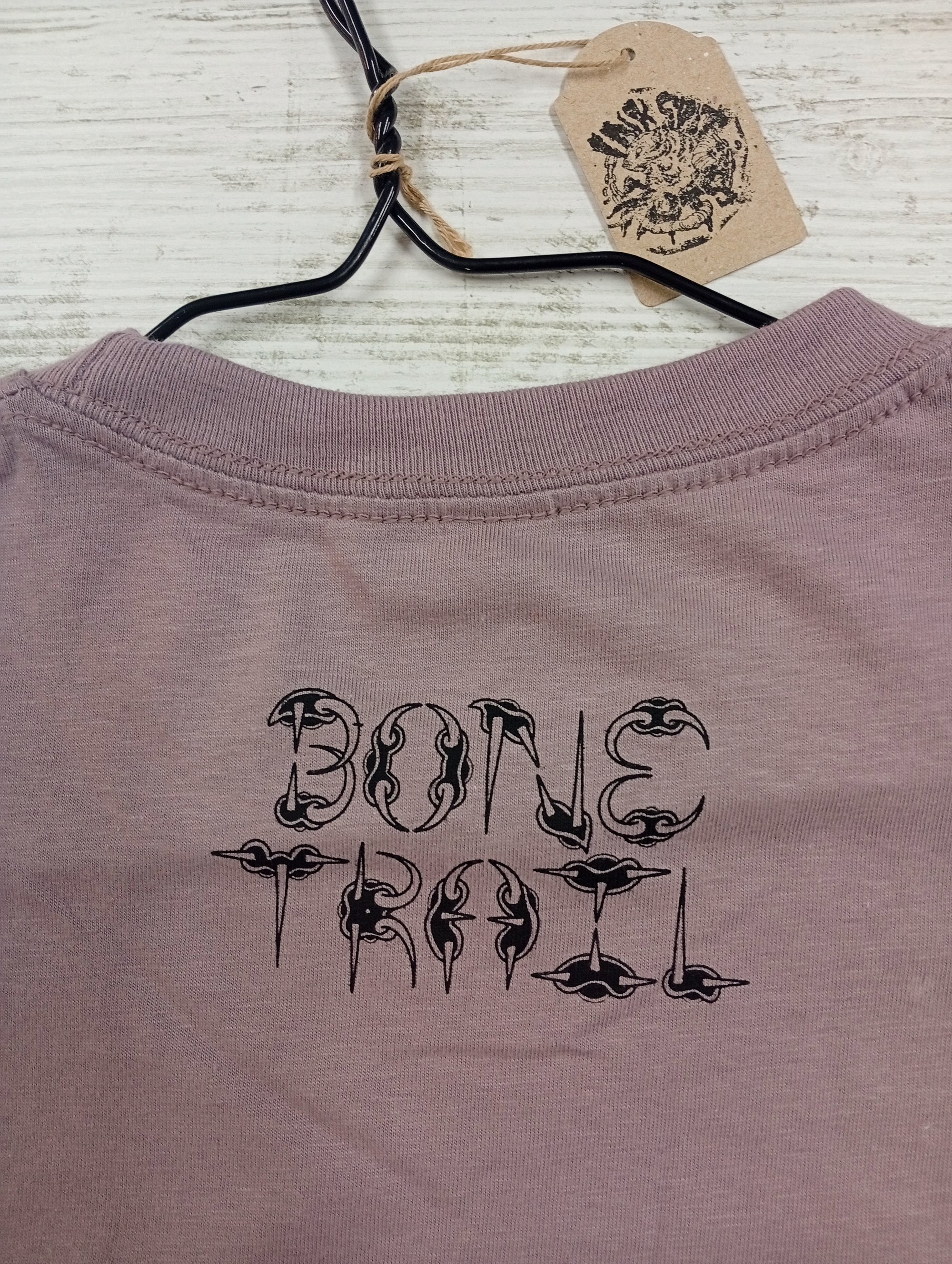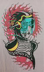 Cyberpunk Geisha design by tattoo artist Wasted Youth. Four colors screen print on the front and Bone Trail logo on the back. Printed on white 100% premium cotton t-shirt.