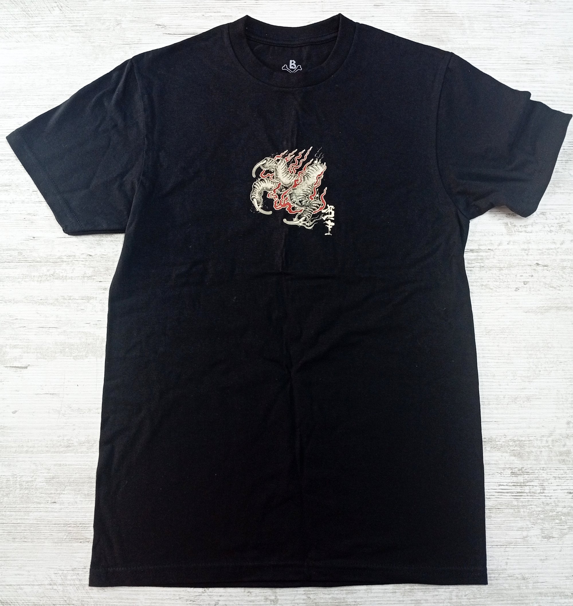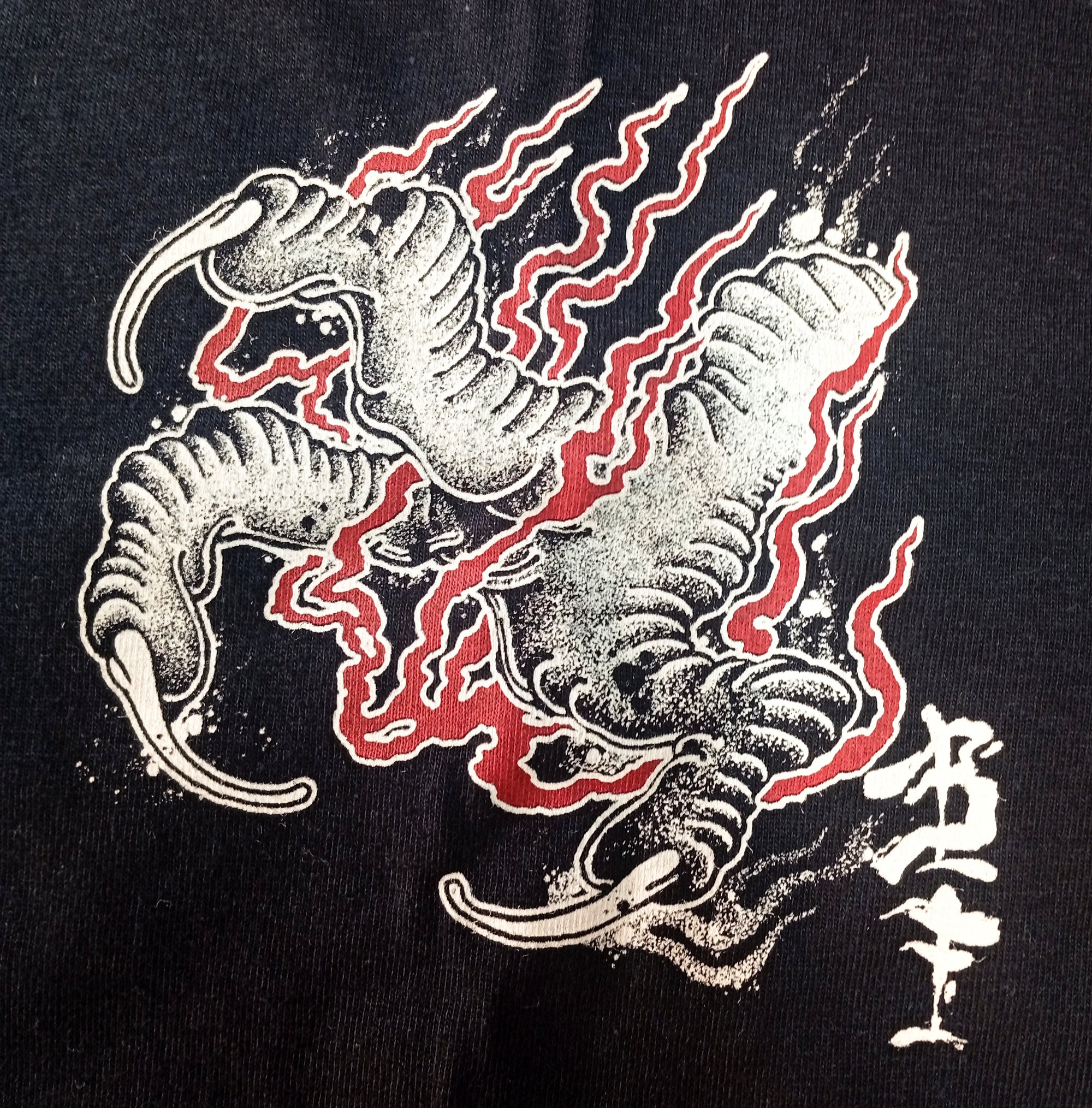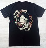 Jorogumo spider woman design by artist Virgo. Two colors screen print on the front and two colors big print on the back. Printed on black premium 100% cotton t-shirt.